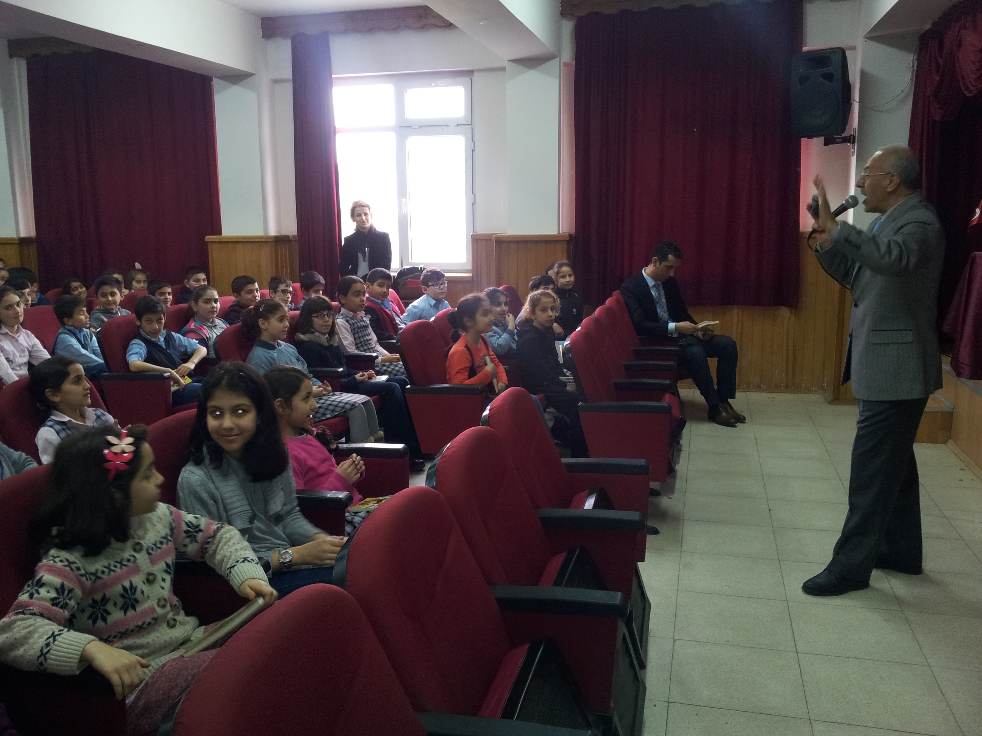 Okulun girişinde yazarımızı güler yüzle karşılayan güvenlik görevlisinden Okul Müdürüne, Müdür Yardımcılarına, öğretmenlere ve öğrencilere kadar herkes programın güzel geçmesi için ellerinden gelenin fazlasını yaptılar. İkinci sunum sırasında okulu ziyaret eden İlçe Milli Müdürü Mustafa Yılmaz ve iki Şube Müdürü, salona gelerek programı takip ettiler. İlçe Milli Eğitim Müdürü, öğrencilere yazarımızın Cennet Kapısı Çanakkale romanımızın mutlaka okunması gerektiğini belirten bir konuşma yaptı.