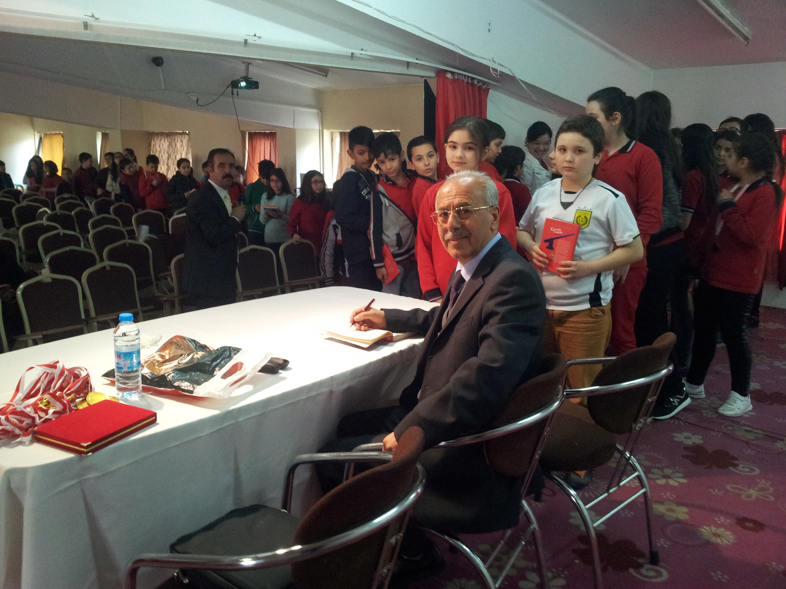 Yazarımız Yusuf Dursun 15, 16, 17 Nisan 2015 tarihlerinde “Yazarlar Okullarda” projesi kapsamında Kayseri’de 3 güzel gün geçirdi. Yusuf Dursun, Kayseri Erdem Kitap Dağıtım sorumlusu Bilal Gülsoy’un yaptığı organizasyonla 6 okulda programlar yaptı. Birbirinden güzel geçen programlarda yazarımızın Nar Yayınları tarafından neşredilen Cennet Kapısı Çanakkale romanı başta olmak üzere yaklaşık 1.300 kitabı, okuyucuyla buluştu. İşin güzel bir yönü de Cennet Kapısı Çanakkale romanının, Besime Özderici ve Osman Hilmi Kalpaklıoğlu Ortaokullarında yarışma kitabı olarak okunmasıydı. Erdem Kitap Dağıtımın bir jestiyle hazırlanan madalyaların, okullarında dereceye giren öğrencilere yazarımız tarafından takdim edilmesi ayrı bir sürpriz oldu. Yusuf Dursun’un Kayseri günlerinin bir başka güzelliği de Kuder’i (Kayseri Uluslararası Öğrenci Derneği) ziyareti oldu. Yazarımız burada 72 milletten gelen yabancı öğrencilere nasıl kucak açıldığına şahit oldu ve “Allah, bu tür STK’ların sayısını artırsın.” dileğinde bulundu. Yusuf Dursun’un Kayseri’de yaşadığı bir başka güzellik de Talas’tan Kayseri’yi kuş bakışı seyretmesi oldu. Memleketimizin her köşesinin cennetten bir köşe olduğunun idrakine, bir kere daha, varan yazarımız, bu güzel vatanın sonsuza kadar var olması duasında bulundu.